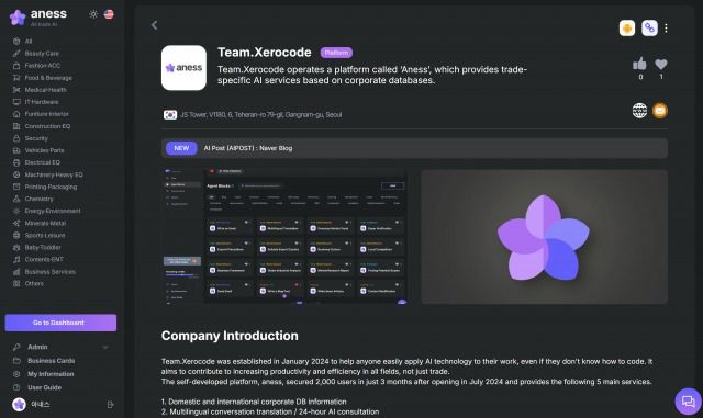 아네스의 혁신적인 기능들은 단순한 비즈니스 대화의 경계를 넘어 기업 간 신뢰 형성과 거래 성사의 기회를 확장하고 있다. 팀제로코드는 이러한 아네스를 통해 B2B 거래의 패러다임을 다시 한 번 바꿔나갈 계획이다.