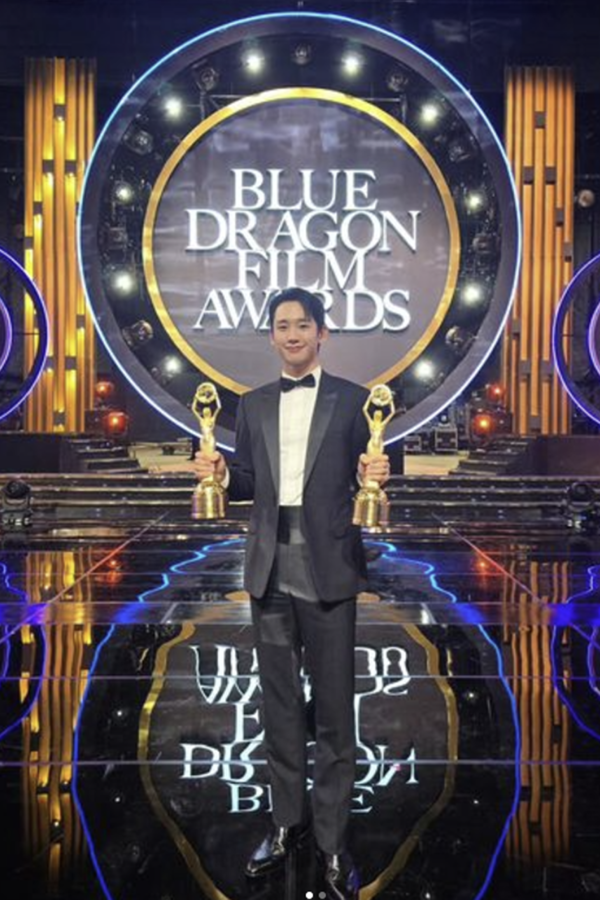 지난 1일 정해인은 SNS에 청룡영화상 로고를 배경으로 트로피를 들고 있는 자신의 사진을 공개했다. 블랙 앤 화이트 턱시도로 남다른 비주얼 뽐낸 그는 우아함과 세련미로 팬들의 마음을 사로잡았다.