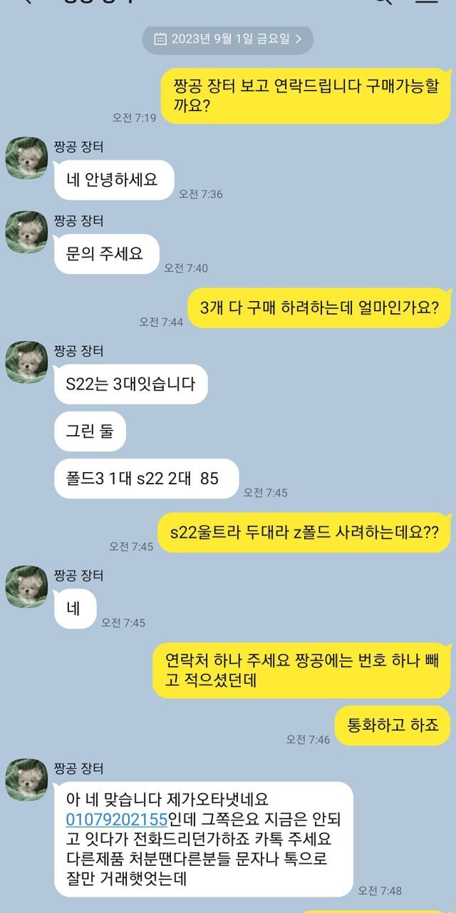실적올려드린다고 딸아이 신규가입 및 직거래 하자고 하니