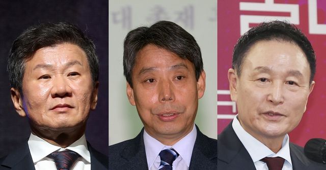 (왼쪽) 정몽규 대한축구협회장, (가운데) 신문선 교수, (오른쪽) 허정무 전 대전 하나시티즌 이사장. / 뉴스1, 연합뉴스