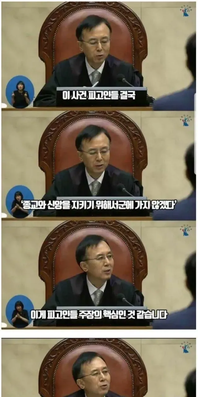 종교적 병역거부자들에게 팩트폭행을 가하는 판사.