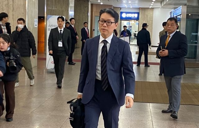 임종훈 한미사이언스 대표이사가 28일 열린 임시 주주총회장에 들어가고 있다. 사진=유수인 기자