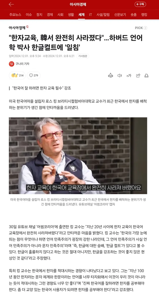 하버드 언어학 박사 "한국어 잘 하려면 한자 교육은 필수"