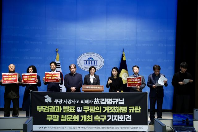 그러면서 "국회 환경노동위 , 국토교통위 쿠팡 청문회를 개최해 사망사고에 대한 쿠팡의 책임을 촉구하고 제대로 된 재발방지대책을 마련해야 한다"고 촉구했다.