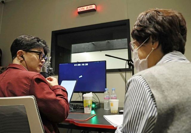 한 대표는 "녹음하면서 봤는데 재밌었다"라며 영화 '1승'의 홍보도 잊지 않았다. 녹음 현장에는 시각장애 피아니스트 출신 김예지 국민의힘 의원도 함께 했다.