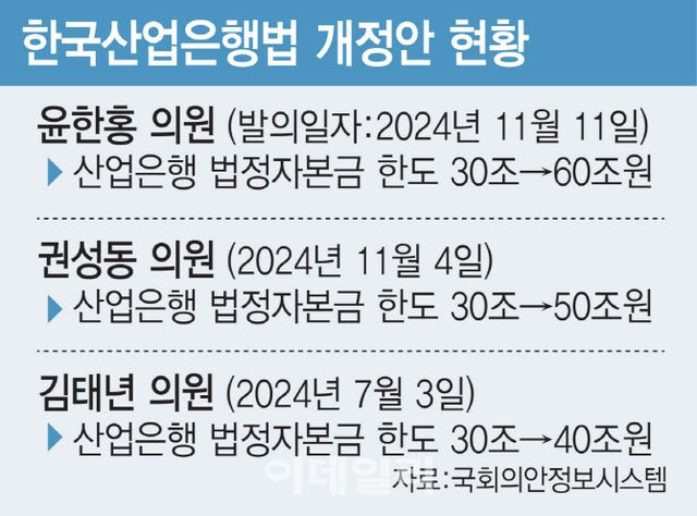 이어 권성동 국민의힘 의원이 발의한 개정안도 산은 자본금 한도를 50조원으로 확대하는 내용을 담았다. 야당에서도 산은 자본금 확대에 공감대를 형성하고 있다. 지난 7월 김태년 더불어민주당 의원은 산은법 개정안을 발의하며 산은 자본금 한도를 40조원으로 늘린다는 내용을 담았다.