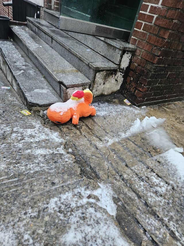 첫눈오고 집앞에 버려져 있음 ㅠㅠ