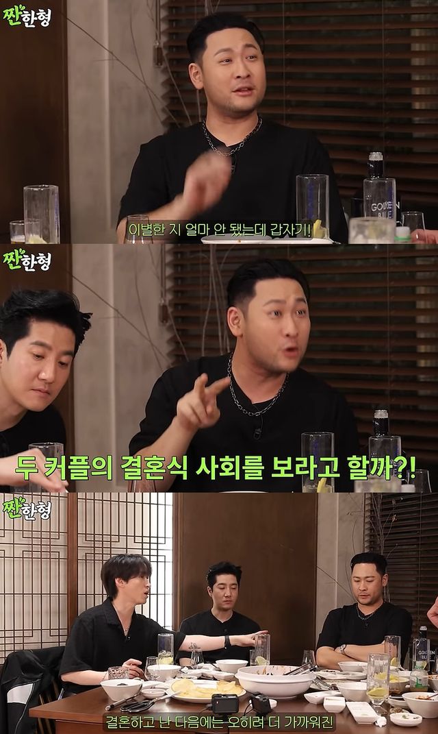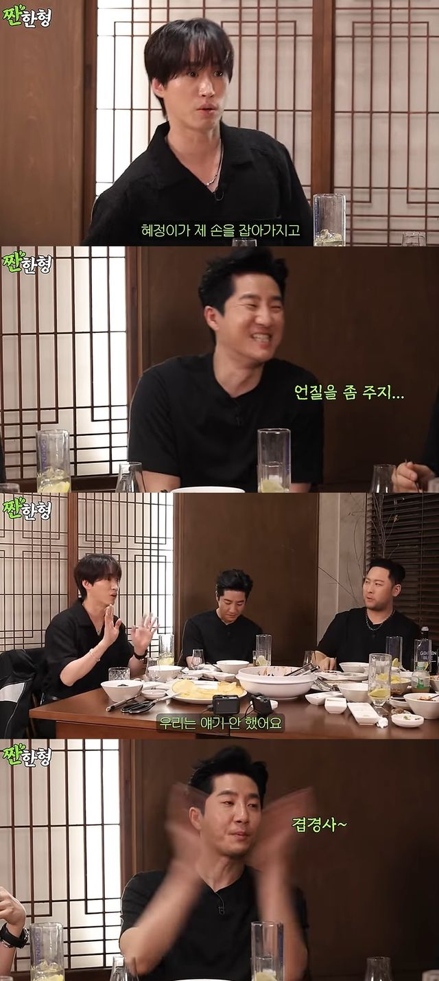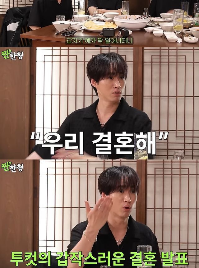 그는 "투컷이 '우리 결혼해'라고 하면서 자기 사귀는 분이랑 발표를 하더라"며 "제가 얘기하려고 자리를 만든 건데. 진짜 일어나다가 얘(투컷)가 일어나서 이야기하니 혜정이가 내 손을 잡아서 앉히더라"고 설명했다.
