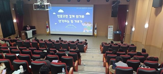 이어 열린 사례 발표회에서는 ▲(내북초) 생각하는 힘을 기르는 인문고전 깊게 읽기 프로그램 운영 ▲(단재초) 언제나 책봄으로 어울림-학교도서관 독서교육 사례 ▲(경덕중) 인품학교 운영 사례-그시절 우리를 키운 책 ▲(광혜원고) 내 인생 책 세권(인생책, 선물책, 같이(가치)책) 프로그램 운영 사례-시간을 달리는 인문 독서여행 등 4개교의 다양한 학교별 운영사례가 소개됐다.