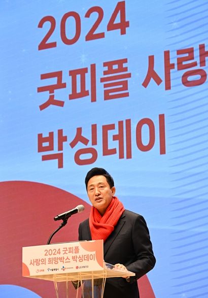 | ▲ 오세훈 서울시장이 3일 열린 ‘2024 사랑의 희망박스 박싱데이’에서 인사말을 하고 있다. |