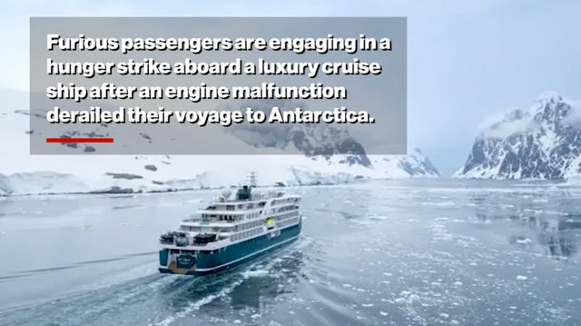 1인당 8000달러(약 1122만 원) 이상을 지불하고 21일 일정의 남극 크루즈에 탑승한 승객들이 엔진 문제로 항해를 중단하자 단식 투쟁에 나섰다.