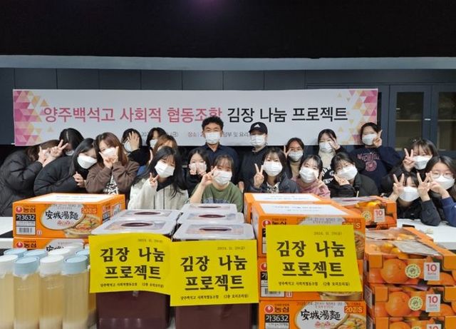 [와이뉴스] 양주시 백석읍이 지난 11월 29일 백석고등학교 사회적협동조합에서 지역사회 온정을 나누기 위한 ‘김장 나눔 프로젝트’를 진행했다고 밝혔다.