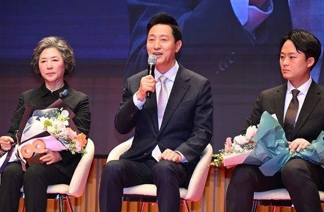 오세훈 서울시장이 3일 오전 서울시청 다목적홀에서 열린 서울시 명예시장 위촉식에서 마무리 인사를 하고 있다. (사진 = 서울시)