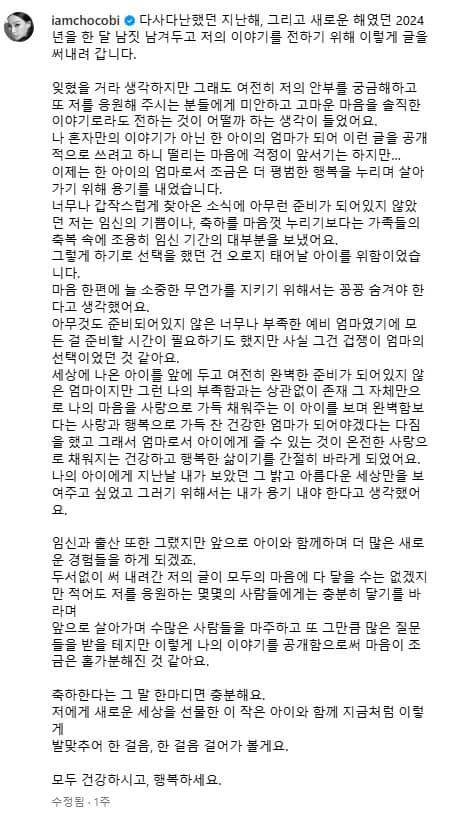 이날 문가비는 "너무나도 갑작스럽게 찾아온 생명에 아무런 준비가 되지 않았다. 많은 이들의 기쁨이나 축복을 누리기보다는 조용하게 가족들과 임신기간을 보냈다"라고 토로했다.