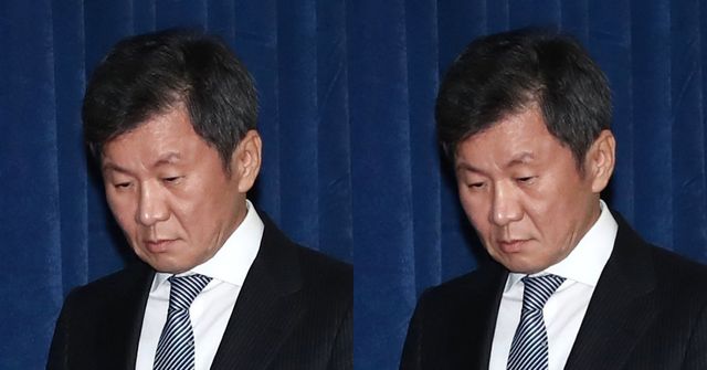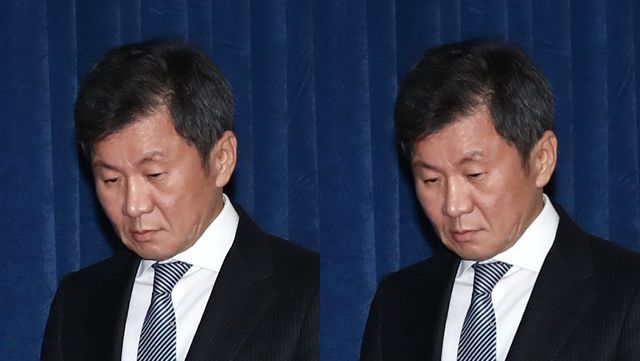 정몽규 대한축구협회장이 지난 2월 16일 오후 서울 종로구 축구회관에서 위르겐 클린스만 축구대표팀 감독의 거취 관련 발표를 하기 위해 입장하고 있다. / 뉴스1