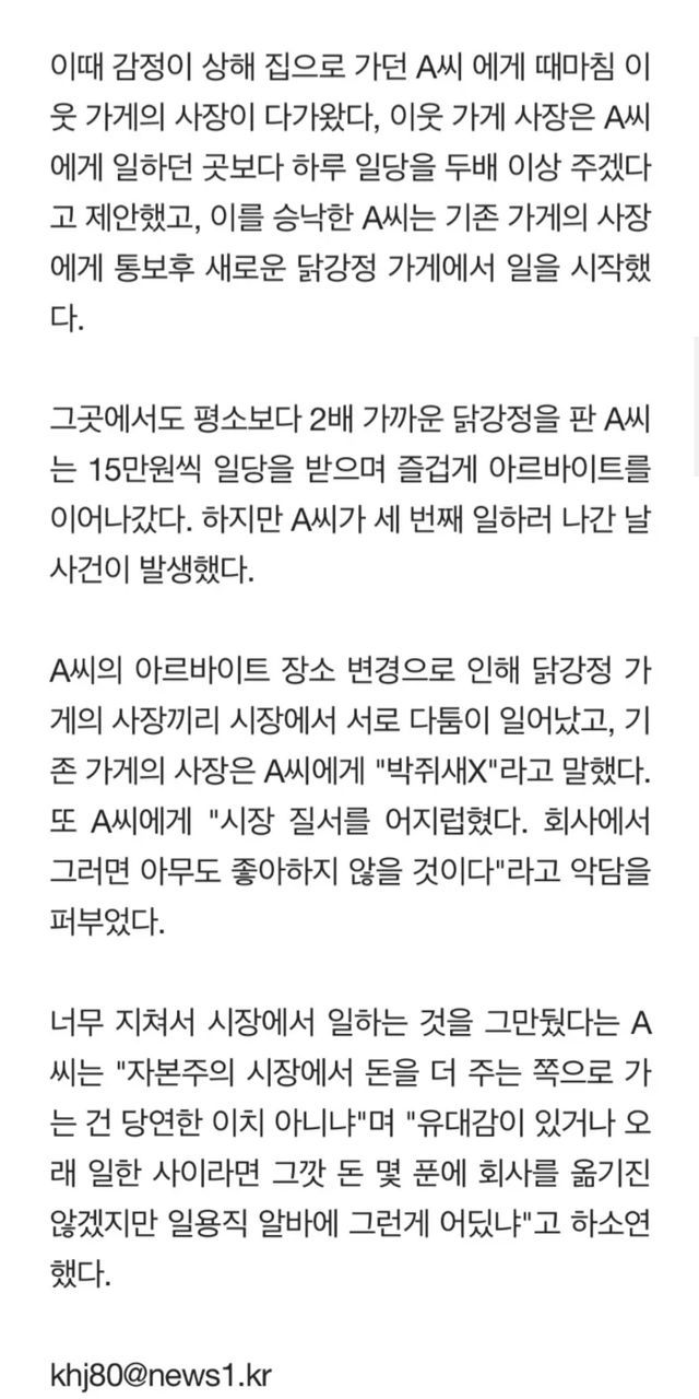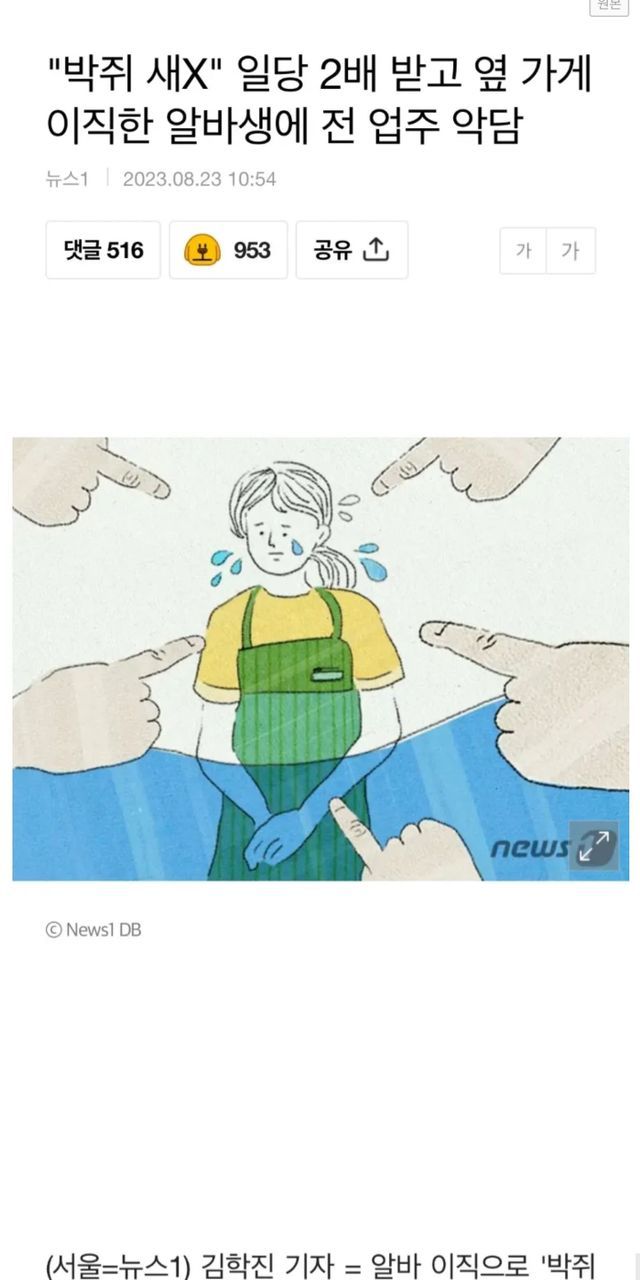 박쥐새x , 일당 2배받고 옆가게 이직한 알바생에 악담한 전업주.