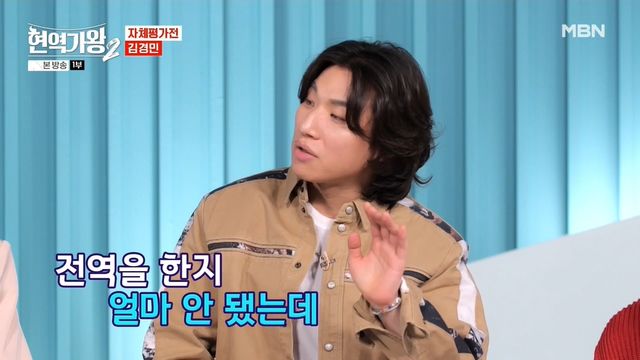 그는 경례를 한 뒤 "육군 군악대 보컬병으로 근무하다가 만기 전역으로"라고 말하다 "다시 하겠습니다"라고 요청했다.