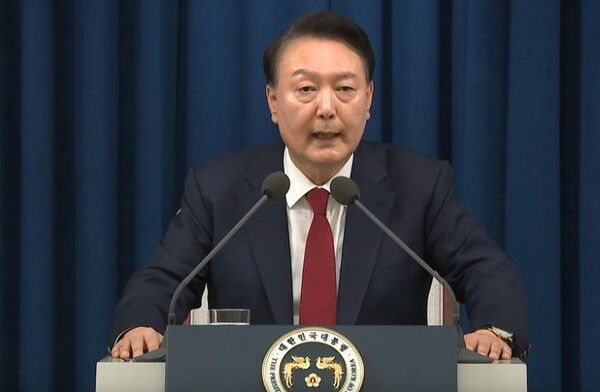 윤석열 대통령은 3일 “북한 공산세력의 위협으로부터 자유 대한민국을 수호하고 우리 국민의 자유 행복을 약탈하는 파렴치한 종북 반국가세력들을 일거에 척결하고 자유 헌정 질서를 지키기 위해 비상계엄을 선포한다”고 밝혔다.