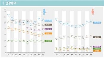 최근 10년 간(2014~2023년) 성인(19세이상)의 남성 흡연율은 큰 폭으로 개선됐지만, 2023년에 남녀 모두 소폭 증가했다. 신체활동 실천율의 경우 감소 추이를 보였지만 2020년 이후 증가 경향이었다.