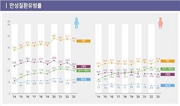 질병관리청(청장 지영미)이 3일 발표한 우리 국민의 주요 만성질환 유병 및 건강행태에 관한 2023년 통계에 따르면 이같이 확인됐다.