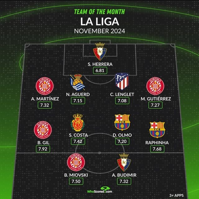힐이 축구통계매체가 선정한 11월 라리가 '이달의 팀'에 뽑혔다.