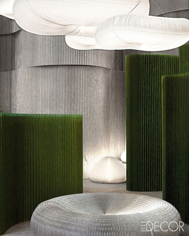 메종 & 오브제 전시장에 들어선 거대한 숲. 유연한 공간과 지속 가능한 재료를 탐구해 온 캐나다 디자인 스튜디오 몰로가 창립 20주년을 맞아 선보인 ‘소프트 컬렉션(Soft Collection)’의 한정판 색상 ‘포레스트 그린’을 입었다. 주름진 파티션은 자유자재로 휘어져 원하는 형태로 세울 수 있는 것이 특징. 파티션 주름 사이로 비치는 빛은 울창한 숲속 풍경을 연상케 해 관람자에게 찰나의 평온함을 선사했다.