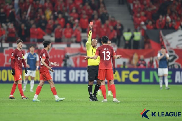 상하이의 비매너 축구가 본격적으로 시작됐다. 후반 10분 수비수 웨이전이 볼 경합 후 쓰러진 신창무 위로 넘어가며 얼굴을 밟아 레드카드를 받았다.