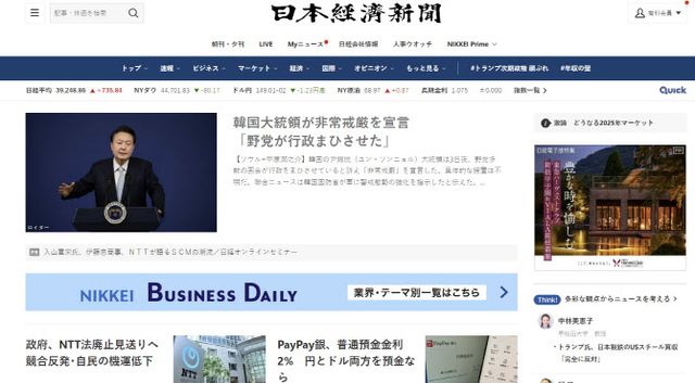 니혼게이자이신문, 교도통신 등 다른 주요 매체들도 “윤 대통령이 야당인 민주당 의원 다수가 국회 행정을 마비시키고 있다고 호소하며 비상계엄을 선언했다”며 “한국 국방부는 군에게 경계태세 강화를 지시했다”고 전했다.