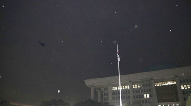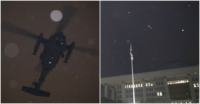 이날 밤 국회 상공에 군 헬기가 떠 있는 사진과 영상이 빠르게 확산됐다. 이날 밤 11시 50분쯤 국회 안으로 진입하는 헬기 모습이 포착됐다고 뉴스1은 전했다.