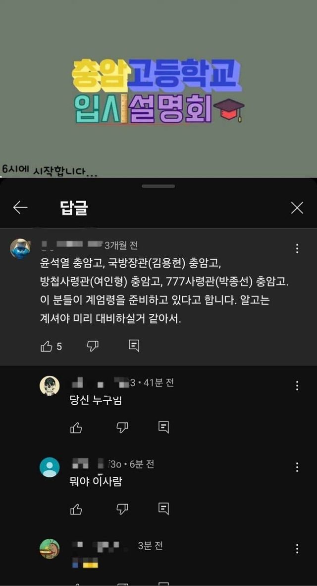3개월 전 충암고 입시설명회에도 나온 계엄령 찌라시