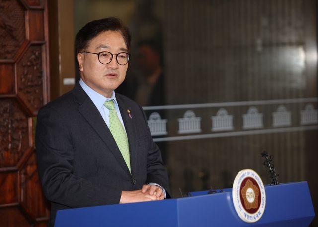국회의장실은 4일 “우 의장이 이번 계엄 사태와 관련, 당분간 공관으로 퇴근하지 않고 국회집무실에서 비상대기할 예정”이라고 밝혔다. 우 의장은 비상대기를 위해 외부 일정도 전면 취소했다.