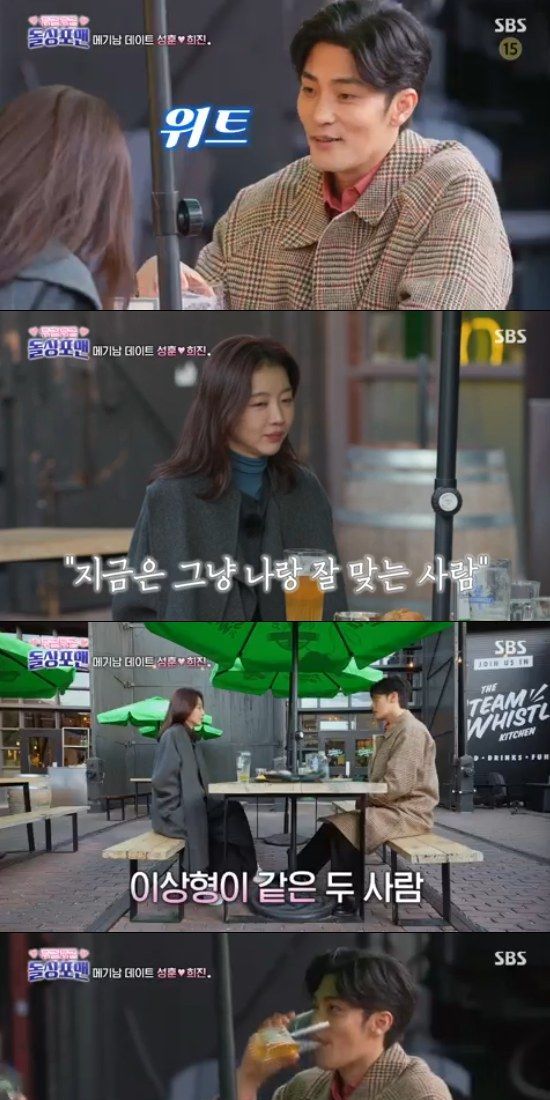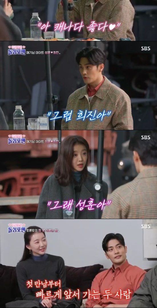 장희진은 "이상형이 점점 없어진다. 나랑 잘 맞고, 같이 있을 때 편한 사람이 좋다"고 했고, 성훈도 공감했다. 그러면서 두 사람은 서로의 반려견 이야기로 끊임없이 대화를 이어나갔다.