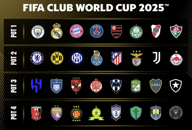 FIFA가 4일 발표한 시드 배정에 따르면 1포트(톱시드)는 맨시티, 레알 마드리드, 바이에른 뮌헨, PSG, 플라멩구, 파우메이라스, 리버 플레이트, 플루미넨세로 결정됐다.