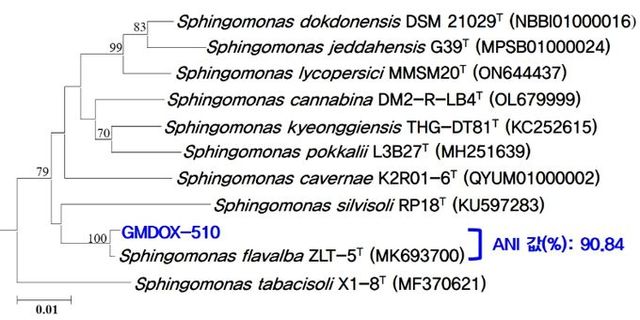 국립낙동강생물자원관 연구진은 2023년부터 ‘담수미생물과 폐유기자원을 활용한 1,4-다이옥산 저감소재 개발’ 연구를 진행하여 1,4-다이옥산을 분해할 수 있는 미생물 8종을 낙동강 유역 하천에서 확보했고, 이 중 분해 능력이 가장 우수한 스핑고모나스(Sphingomonas) 속 균주 ‘지엠독스(GMDOX)-510’을 분리 및 배양하는데 성공했다.