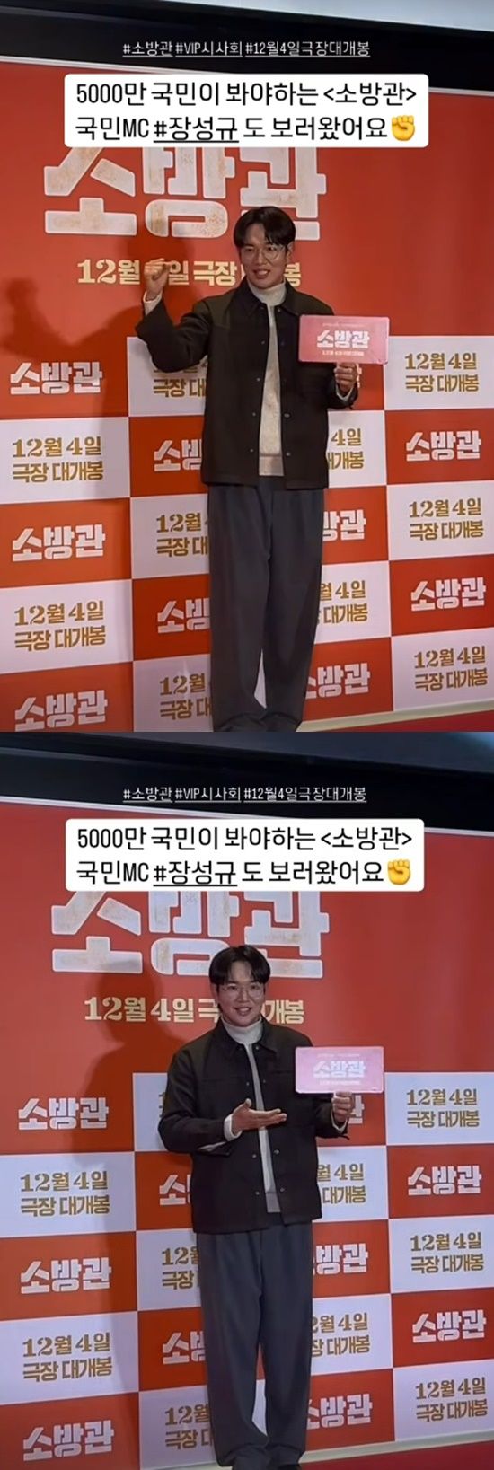 장성규는 3일 서울 강남구 삼성동 메가박스 코엑스에서 진행된 영화 '소방관'(감독 곽경택) VIP 시사회 포토월에 참석했다.