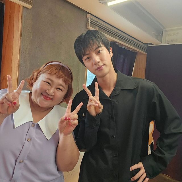 홍윤화가 방탄소년단 진과 함께 컨텐츠를 촬영했다.