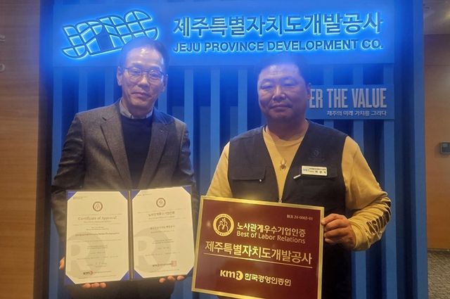 [한라일보] 제주특별자치도개발공사가 노사 간 상생과 협력의 성과를 인정받아 한국경영인증원 주관 '노사관계우수기업 인증'을 획득했다.