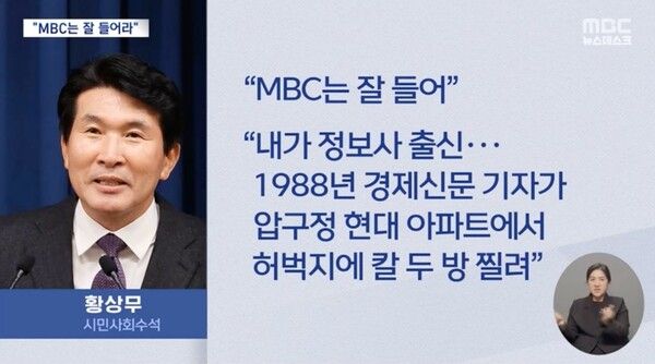MBC는 황 전 수석의 방심위 신고는 언론에 대한 '2차 협박'이라고 반발했다.