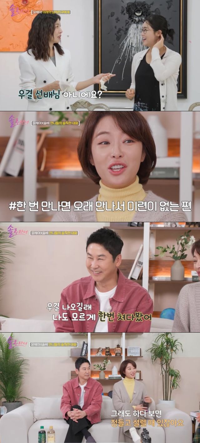 황정음은 “한 번 만나면 10년 만난다”며 김용준을 언급했다. 황정음은 윤세아에게 “‘우리 결혼했어요’ 하다 보면 정들고 설렐 때가 있다”고 말했고 윤세아는 “순간에 충실하다 보면 그렇게 느껴질 때가 있다”고 대답했다.
