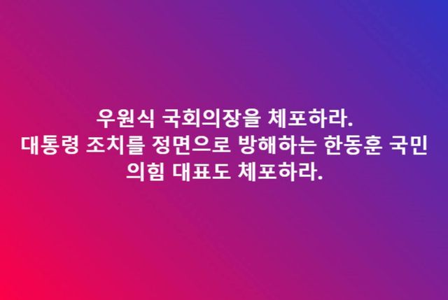 이어 "강력히 대처하라. 강력히 수사하라. 모든 비상조치를 취하라. 국민의힘은 대통령과 함께 가라"고 강조했다.