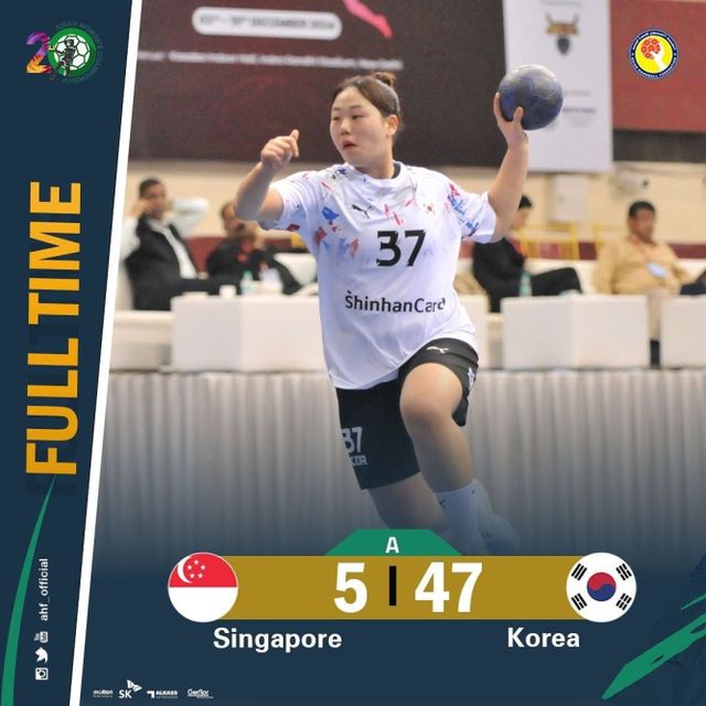 이계청 감독이 이끄는 여자 핸드볼 대표팀은 3일 밤(한국시간) 인도 뉴델리 인드라 간디 인도어 스타디움에서 열린 제20회 아시아여자핸드볼선수권대회 A조 예선 1차전에서 싱가포르를 47-5로 대파했다. 이날 대표팀은 전반에만 22-2로 앞서는 등 일찌감치 승기를 잡았다.