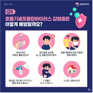 지영미 질병관리청장은 “지난해부터 코로나19 대유행기 동안 환자 발생이 크지 않았던 백일해, 마이코플라스마 폐렴균 감염증 등 다양한 호흡기 감염병이 소아 및 청소년 연령대에서 유행하고 있다”면서, “호흡기 감염병은 나이가 어릴수록 중증 합병증으로 진행될 가능성이 커지는 만큼 호흡기 증상이 있는 신생아 및 영아는 신속하게 진료를 받을 수 있도록 가정에서 각별히 주의해 달라”고 말했다. 이어 “산후조리원, 신생아실에서는 신생아 접촉 전후 손씻기, 호흡기 증상이 있는 직원이나 방문객 출입제한 등 감염관리 수칙을 철저히 준수해 달라”고 덧붙였다.