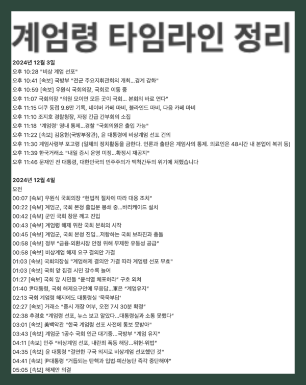 윤석열 대통령이 12월 3일 밤 10시 20분, 전격적으로 비상계엄을 선포했다.