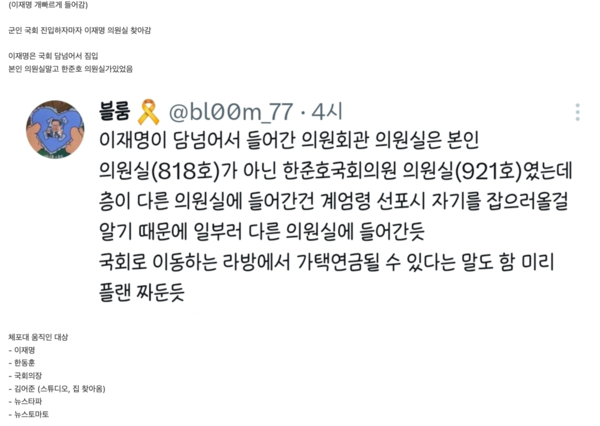 “군대를 동원해 국회의원들을 체포할 가능성이 높다”며 지지자들에게 국회로 모여 민주주의를 지켜달라고 호소한 그의 메시지는 순식간에 확산됐다.