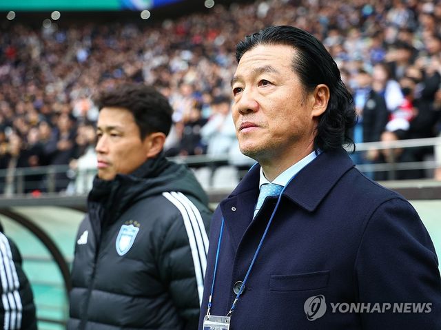 지난달 30일 오후 서울월드컵경기장에서 열린 2024 하나은행 코리아컵 포항 스틸러스와 울산HD의 결승전. 울산 김판곤 감독이 경기 시작을 기다리고 있다. / 연합뉴스