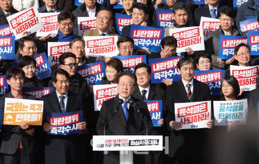 국회 5개 야당(더불어민주당·조국혁신당·진보당·기본소득당·사회민주당)의 국회의원·당 소속 지역위원장·지방의원·당직자·보좌진·당원 등 5000명(민주당 측 추산)은 4일 오후 서울 여의도 국회 본청 앞 계단에서 ‘윤석열 대통령 사퇴 촉구 탄핵추진 비상시국대회’를 열었다.