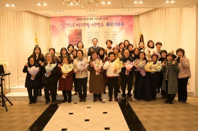[파이낸셜경제=김영란 기자] 음성군 여성 어르신 열 분의 인생 이야기를 담은 자서전 ‘인생의 마지막 이벤트’ 출간 행사가 한국예총 충청북도 연합회 음성군지회 주관으로 4일 영빈컨벤션에서 진행됐다.