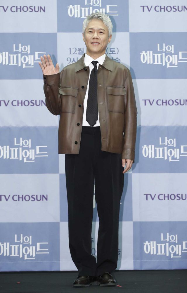 배우 박호산이 2023년 12월 21일 서울 마포구 스탠포드호텔코리아에서 열린 TV조선 새 주말 미니시리즈 '나의 해피엔드' 제작발표회에서 포즈를 취하고 있다 / 뉴스1