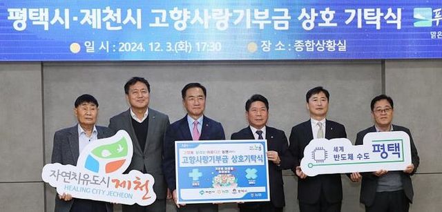 [와이뉴스] 평택시는 지난 3일 시청 종합상황실에서 자매결연 도시인 제천시와 ‘고향사랑기부금 상호 기탁식’을 개최했다. 이날 행사는 평택농협과 제천농협의 임직원들이 지역농산물 소비를 늘리고 지역경제를 활성화하기 위해 자발적인 기부 참여로 이루어졌다.