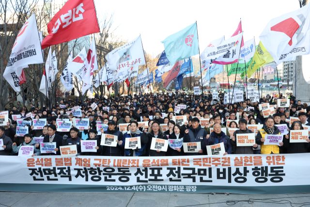 민주노총도 이날 서울 중구 민주노총 회의실에서 기자회견을 열고 "윤석열 정권 퇴진 시까지 무기한 총파업에 돌입한다"며 "수도권 조합원은 4일 (오전) 09시에 서울 광화문광장으로 집결한다. 지역 조합원은 지역본부에서 정한 장소로 집결한다"는 투쟁 지침을 발표했다.